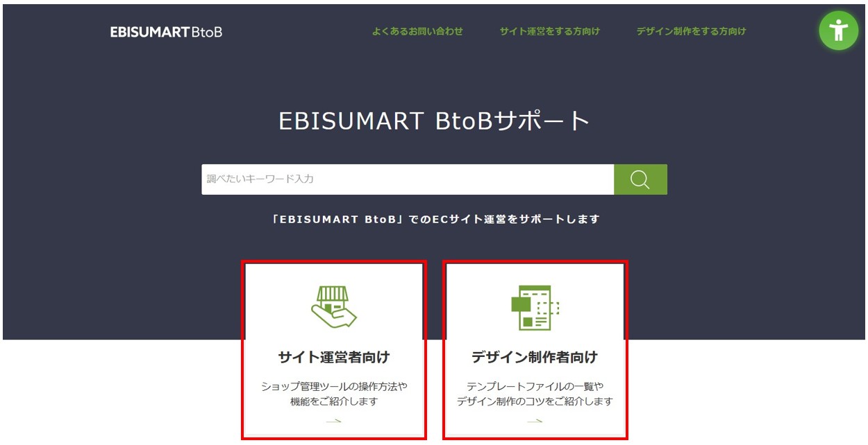 本システムの基本的な機能や操作方法については、EBISUMART BtoBサポートサイトをご活用ください。