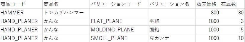バリエーションごとに行が分かれます。
