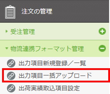 カスタム物流連携で使用する出荷指示データ用の出力項目を、一括で新規登録・更新することができます。