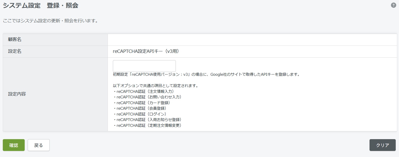reCAPTCHA v2使用時は「reCAPTCHA設定APIキー(v2用)」に設定してください。