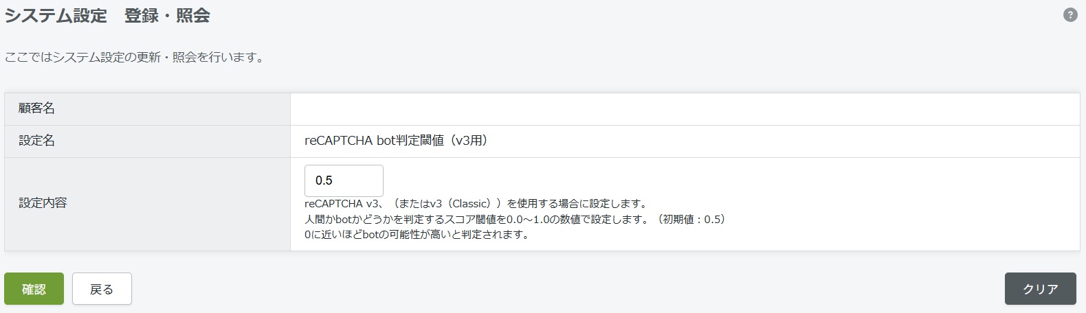 ・本設定「reCAPTCHA bot判定閾値(v3用)」の調整のご案内